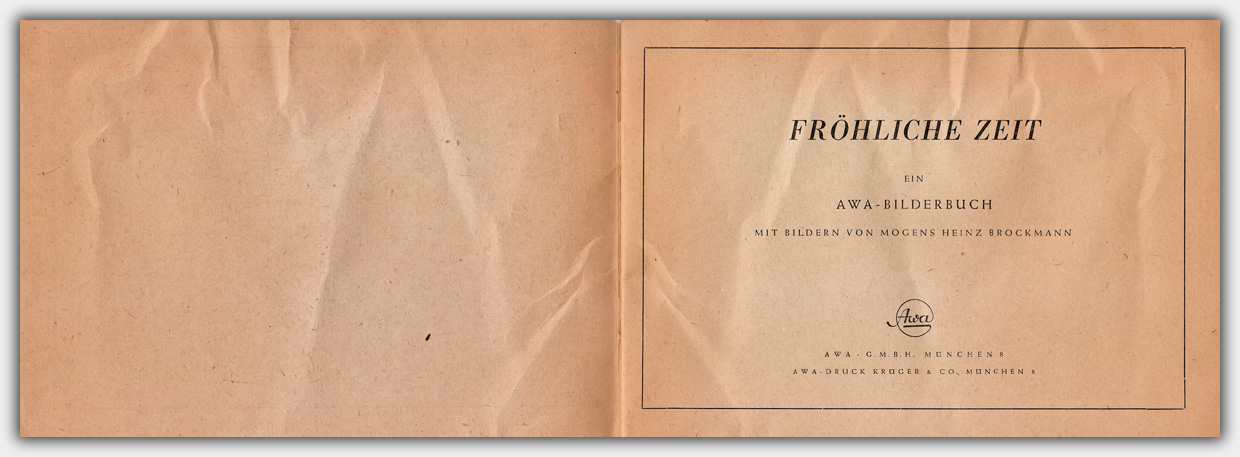 Im November 1948 erschien im Awa-Verlag das Bilderbuch Fröhliche Zeit mit Bildern von Mogens Heinz Brockmann.