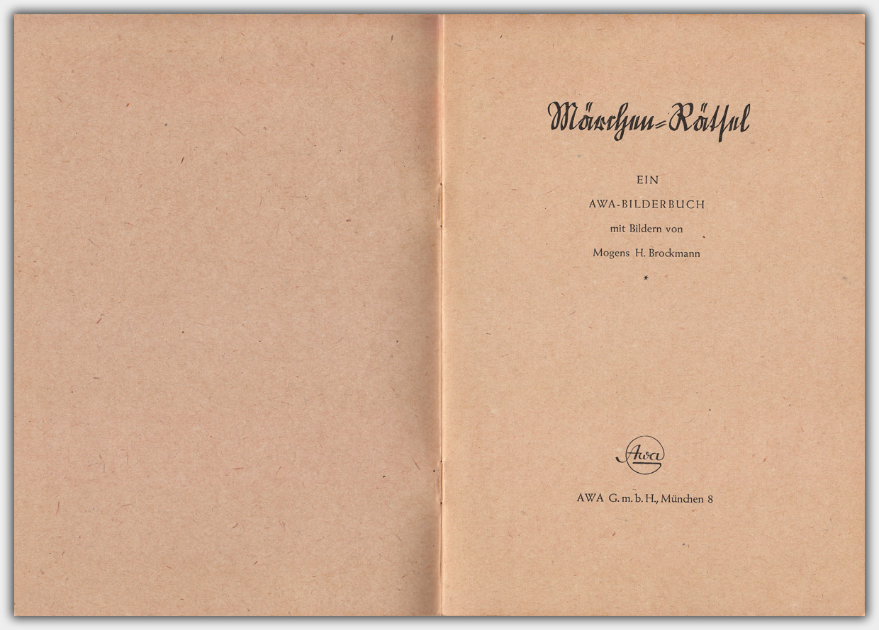 Im November 1948 erschien im Awa-Verlag das Bilderbuch Märchen-Rätsel mit Bildern von Mogens Heinz Brockmann.