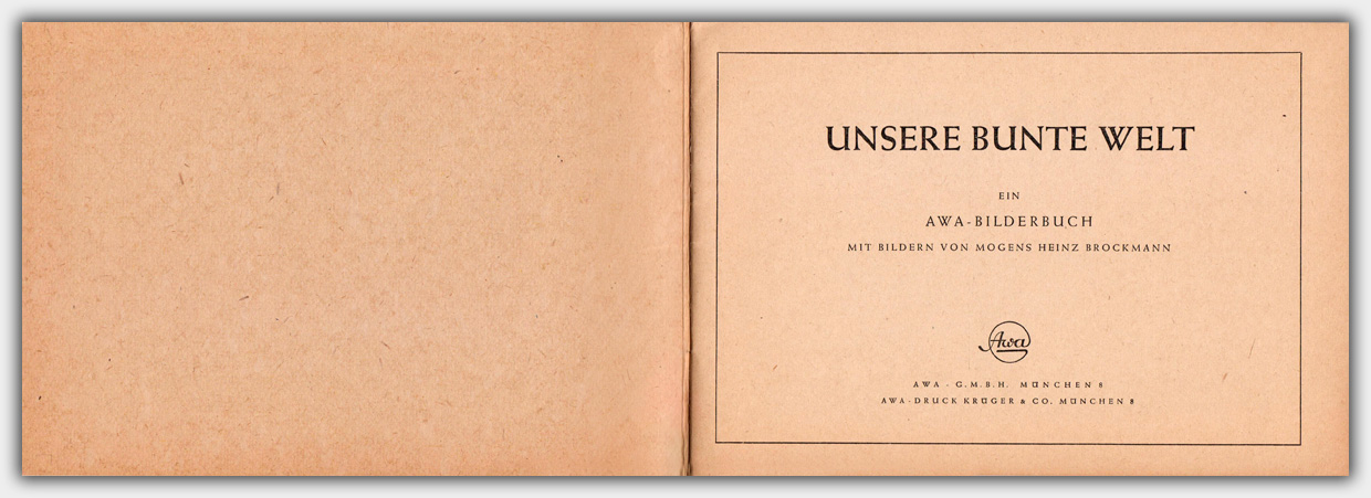 Im Februar 1949 erschien im Awa-Verlag das Bilderbuch Unsere bunte Welt mit Bildern von Mogens Heinz Brockmann.