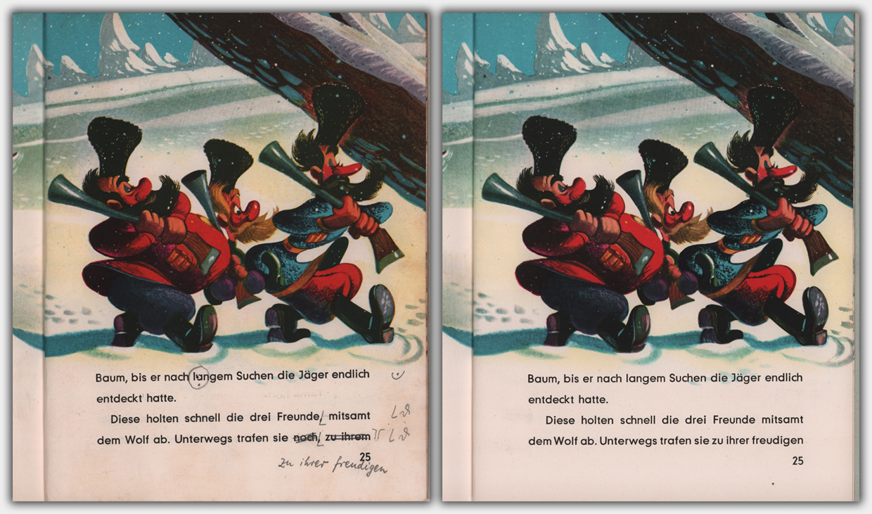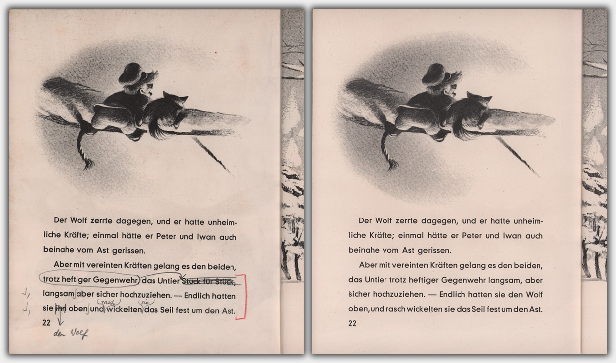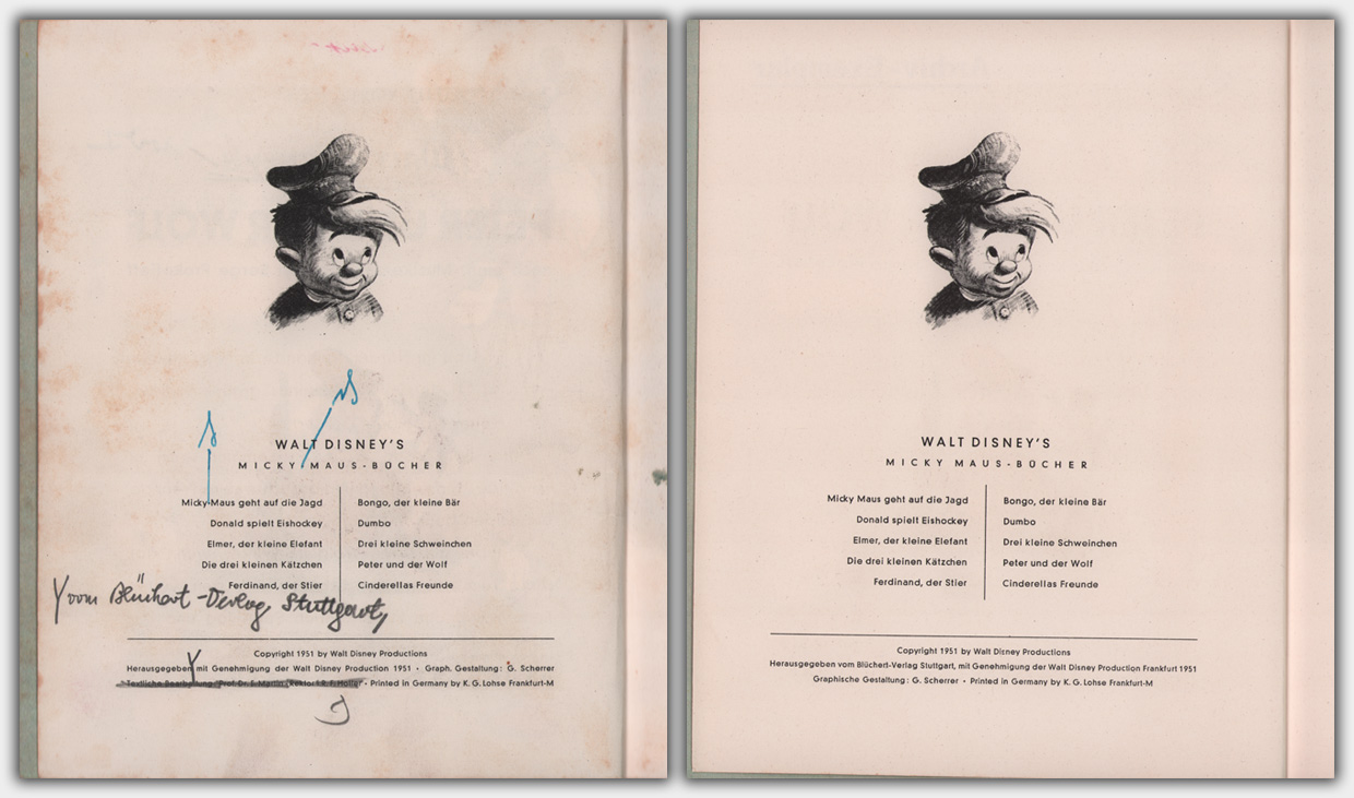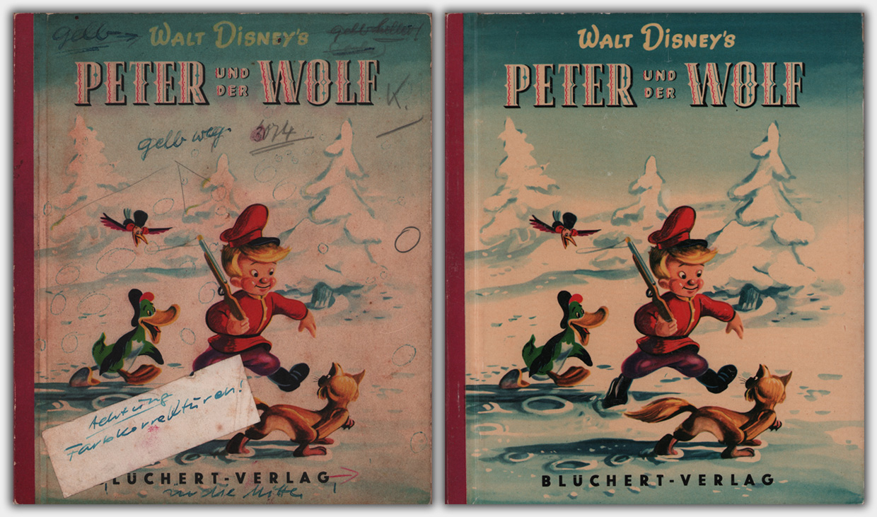 Vom Pappband 12 Peter und der Wolf liegt mir ein Korrekturexemplar aus dem Produktionsprozess vor. Auf dem Titelbild erkennt man den roten Bongo-Schriftzug vom Band 11.