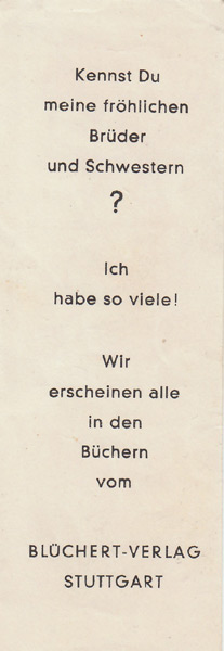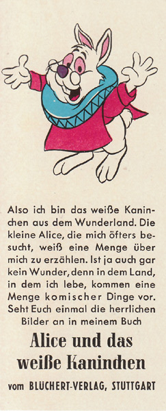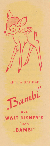 Wahrscheinlich mit erscheinen der ersten beiden Märchenfilm-Bücher Schneewittchen und die sieben Zwerge und Bambi im Jahr 1950, gab es auch die ersten Lesezeichen im Blüchert Verlag.
