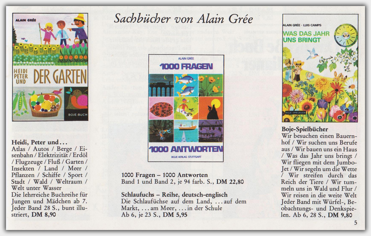 Im Boje Verlag erschienen u.a. von ⇒ Alain Grée die Buchreihen ⇒ Blick in die Welt und die ⇒ Spielbücher.