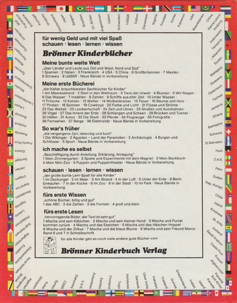 1973 und 1974 erschien im Brönner Kinderbuch Verlag die Buchreihe Meine bunte weite Welt.