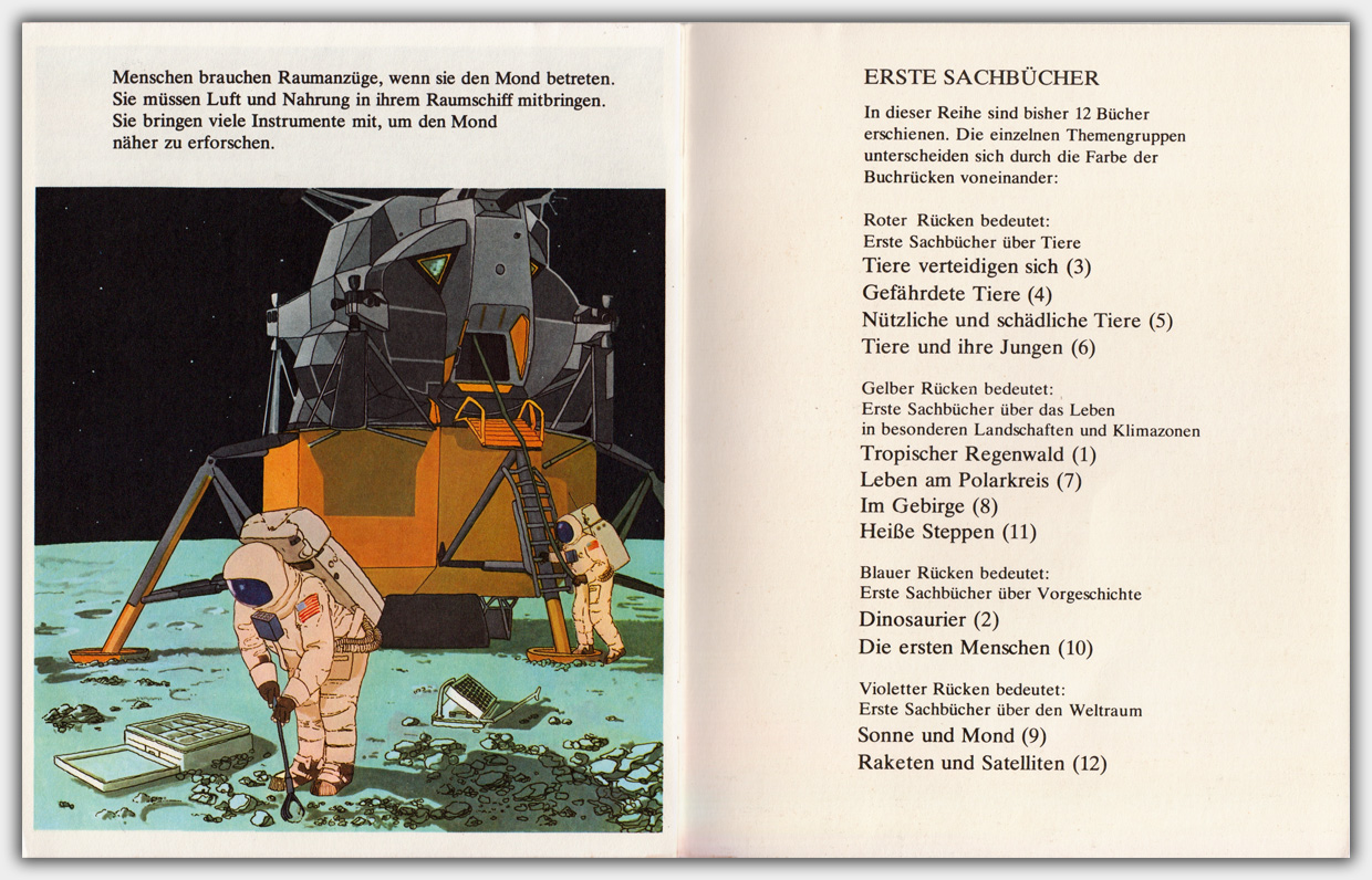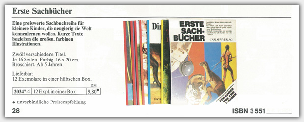 1976 erschien die 12-teilige Heftreihe Erste Sachbücher im Carlsen Verlag. Die englischsprachige Orginalausgabe erschien unter dem Titel First Interest zuvor bei Ginn & Company Ltd., London