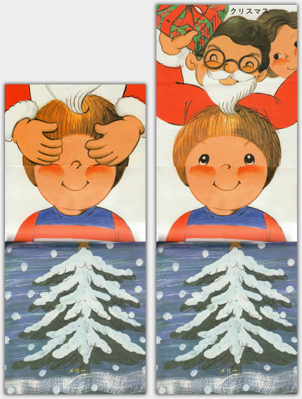 Die Hefte von Iwao Tsunoda (Text) und Akiko Tsunoda (Illustration) haben auf jeder Seite ein Teil zum Aufklappen. So verändet sich das Gesamtbild und eine weiterer Text erscheint.