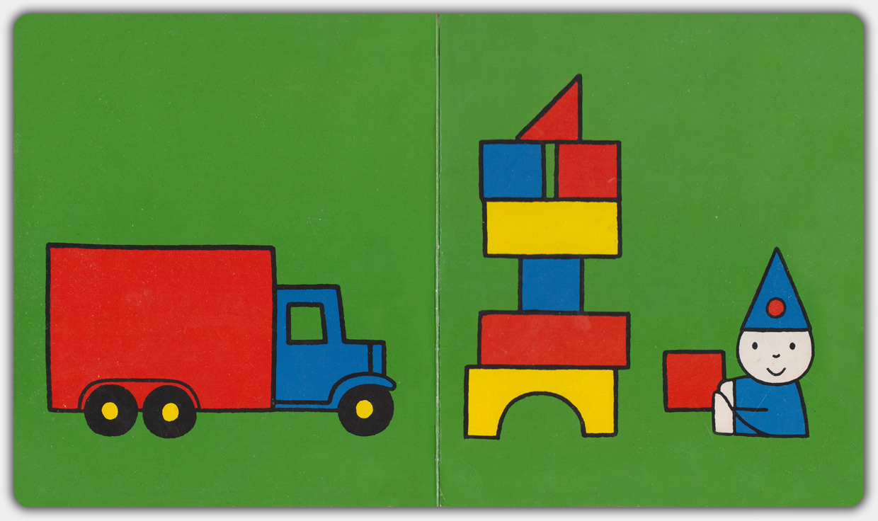 : Mijn eerste prentenboek. Das Buch hat das Format 20,5 x 17,5 cm, einen Umfang von 5 Kartonblättern sowie eine Leinenbindung. Der Verkaufspreis betrug zunächst 4,80 DM und später (5. Auflage 1971) 5,80 DM. Das Buch hat keine Texte.