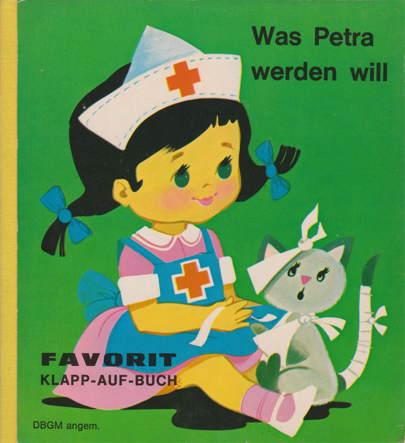 1973 erschien im Favorit Verlag die 4-teilige Reihe Klapp-auf-Buch. Die Pappseiten-Bilderbücher haben auf der hinteren Umschlagseite einen Kopf und Beine montiert, die ausgeklappt werden und so die Illustrationen im Buch ergänzen.