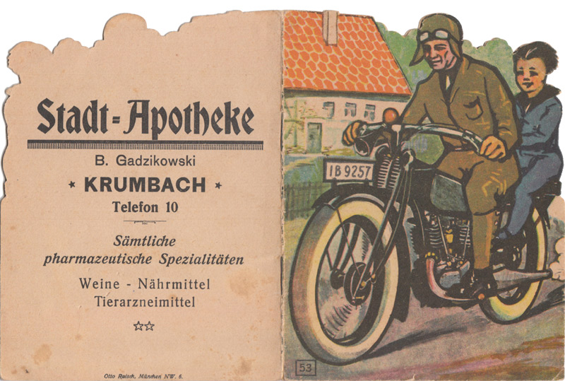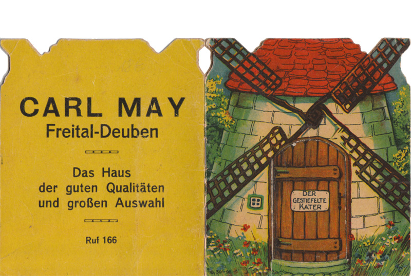 Mindestens seit den 1930er Jahren erschienen formgestanzte Werbehefte. Mir liegen einige dieser Hefte vor. Leider finden sich kaum Informationen zu Autoren oder Verlagen.