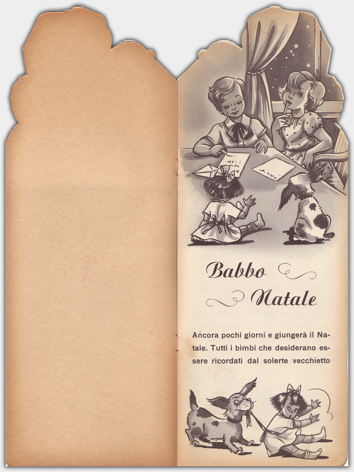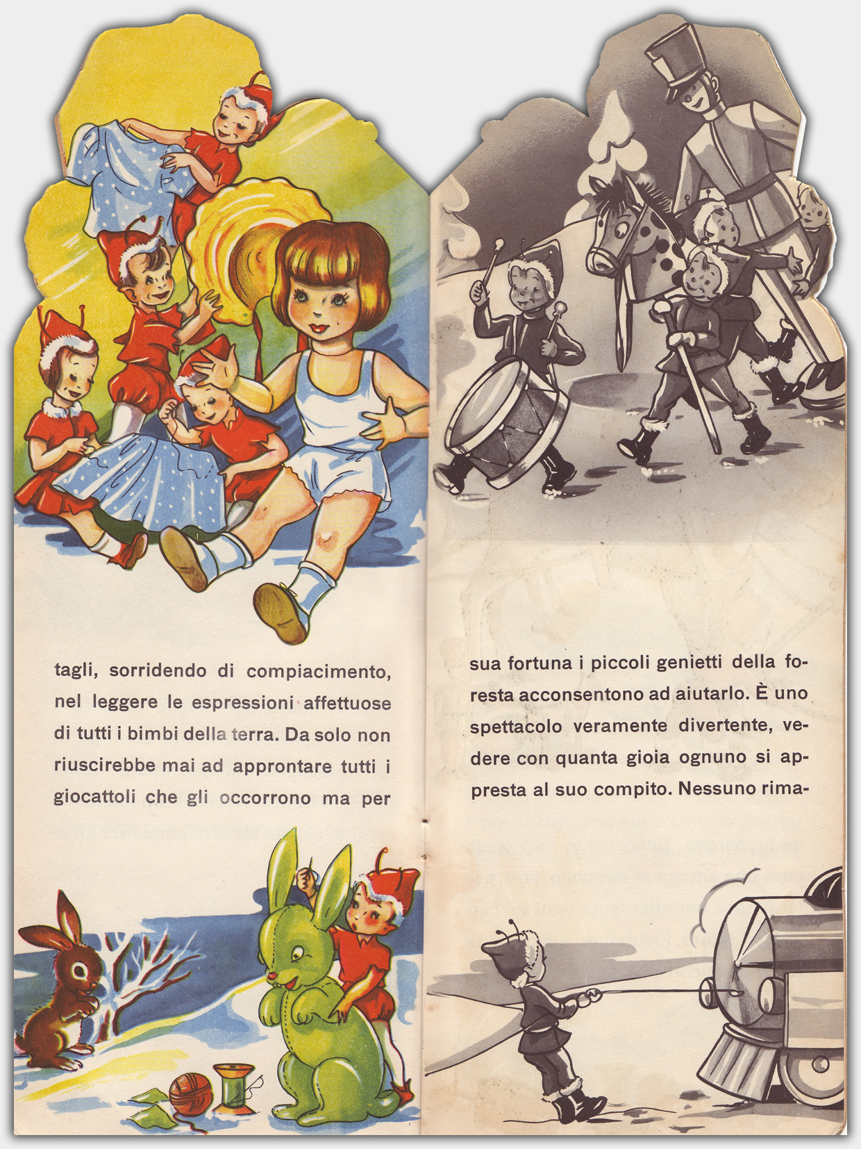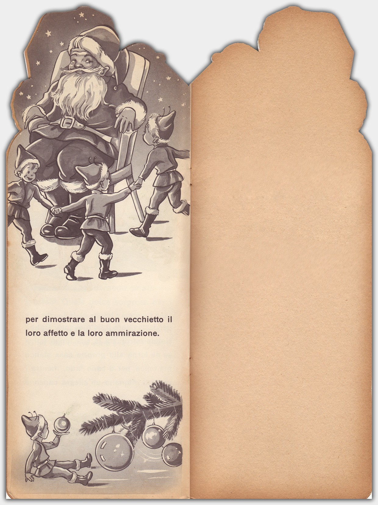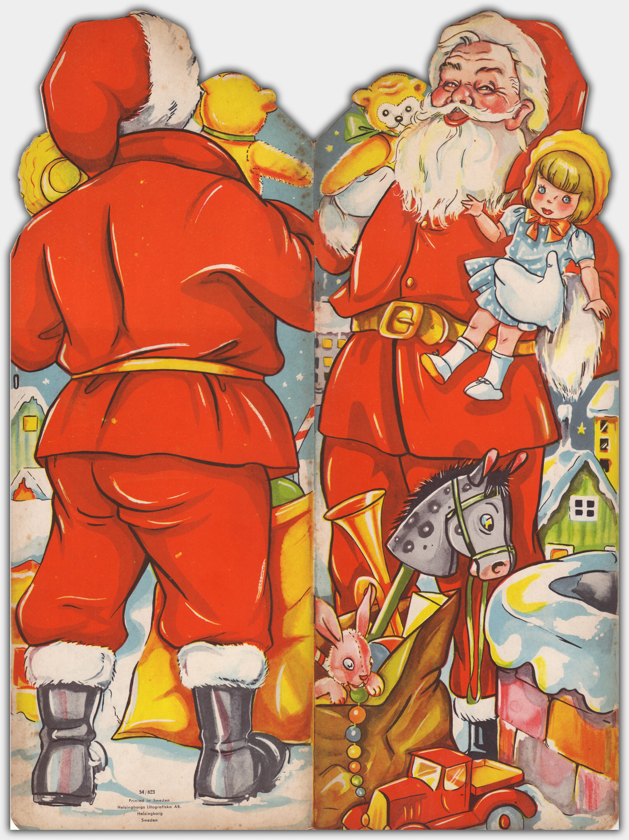 Anfang der 1950er Jahre erschien bei Helsingborgs Litografiska eine Umrissbilderbuch in Form eines Weihnachtsmanns. Die Titelseite besteht aus einer Illustration ohne Test. Der Hefttitel findet sich auf der ersten Innenseite.