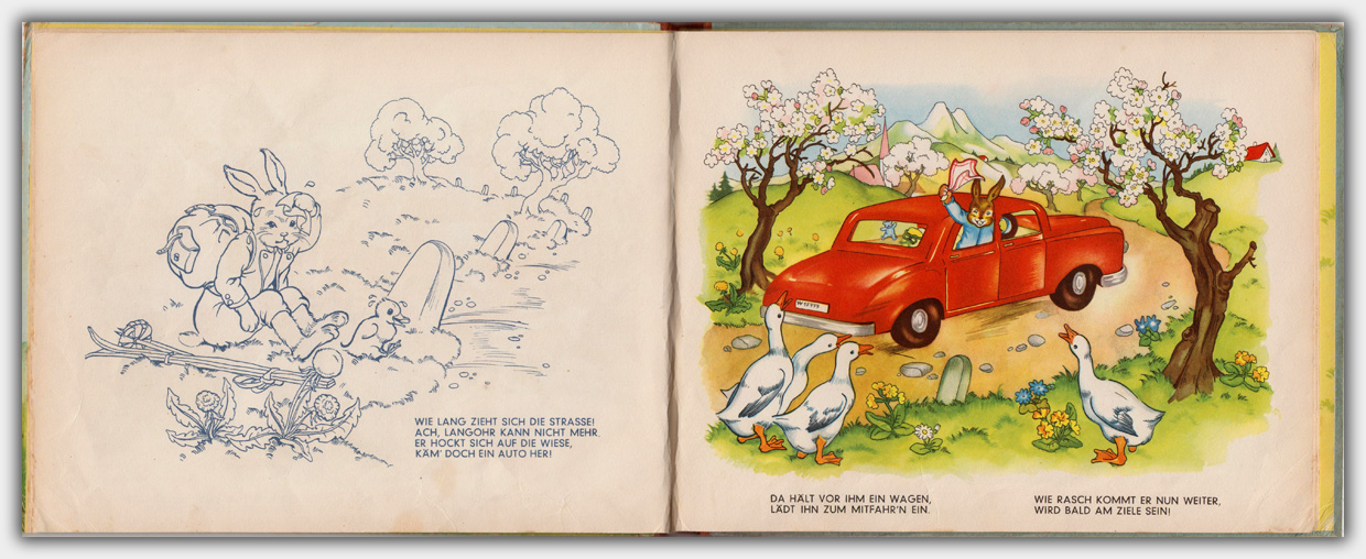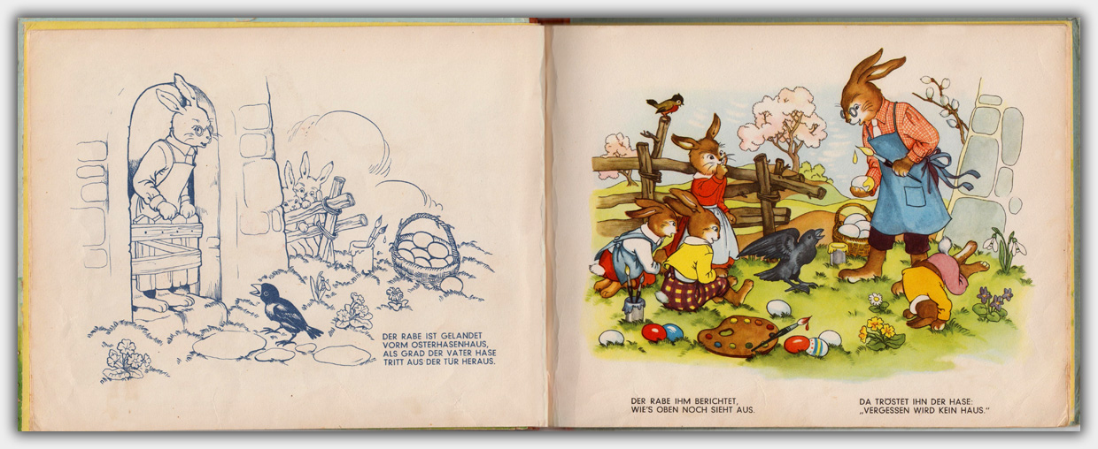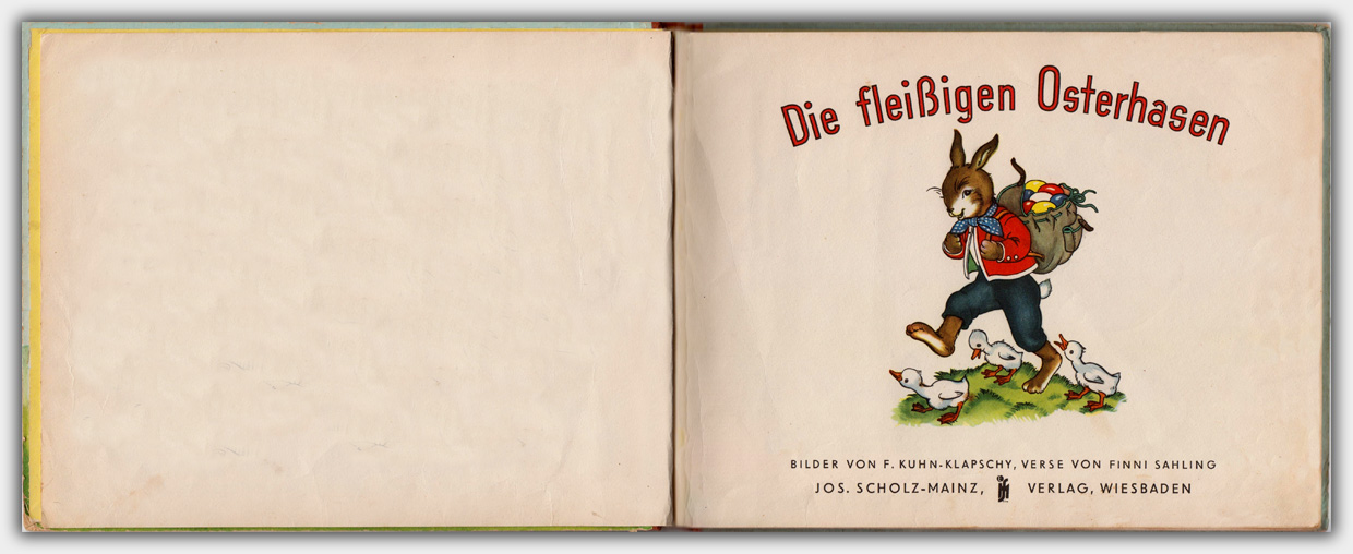 Der Titel Die fleißigen Osterhasen ( Muck II 1436 ) erschien Anfang der 1950er Jahre zunächst im Bilderbuchverlag A. Mühllehner aus Wels in Oberösterreich. Im Jahr 1955 brachte der Jos. Scholz-Mainz Verlag eine Lizenzausgabe heraus.