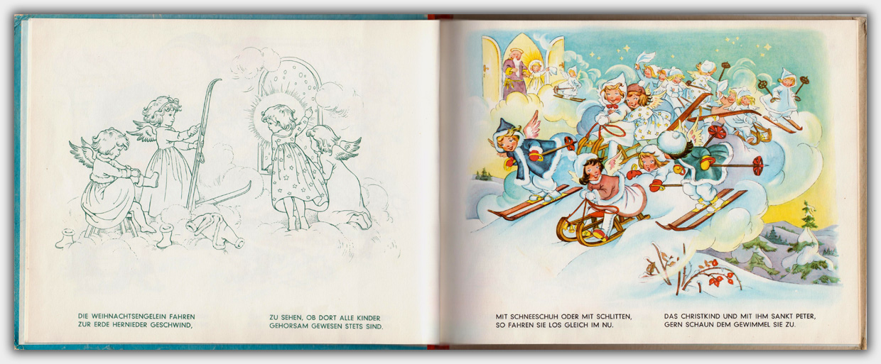 Der Weihnachtstitel Vom Himmel hoch.. ( Muck II 6738 ) erschien Anfang der 1950er Jahre zunächst im Bilderbuchverlag A. Mühllehner aus Wels in Oberösterreich. Im Jahr 1954 brachte der Jos. Scholz-Mainz Verlag eine Lizenzausgabe heraus.