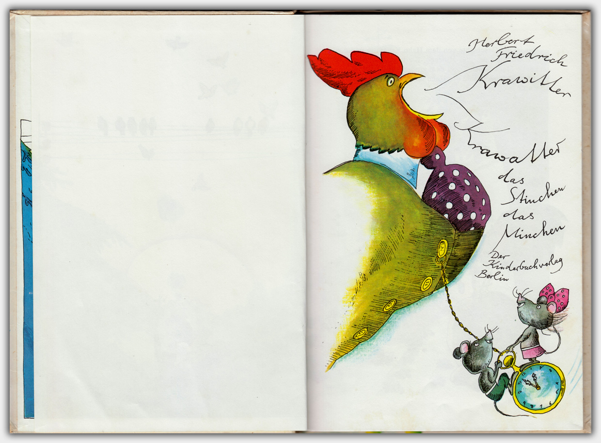 Im Jahr 1973 erschien im Kinderbuchverlag das Bilderbuch Krawitter, Krawatter, das Stinchen, das Minchen von Herbert Friedrich. Die Illustrationen stammen von Gerhard Lahr.
