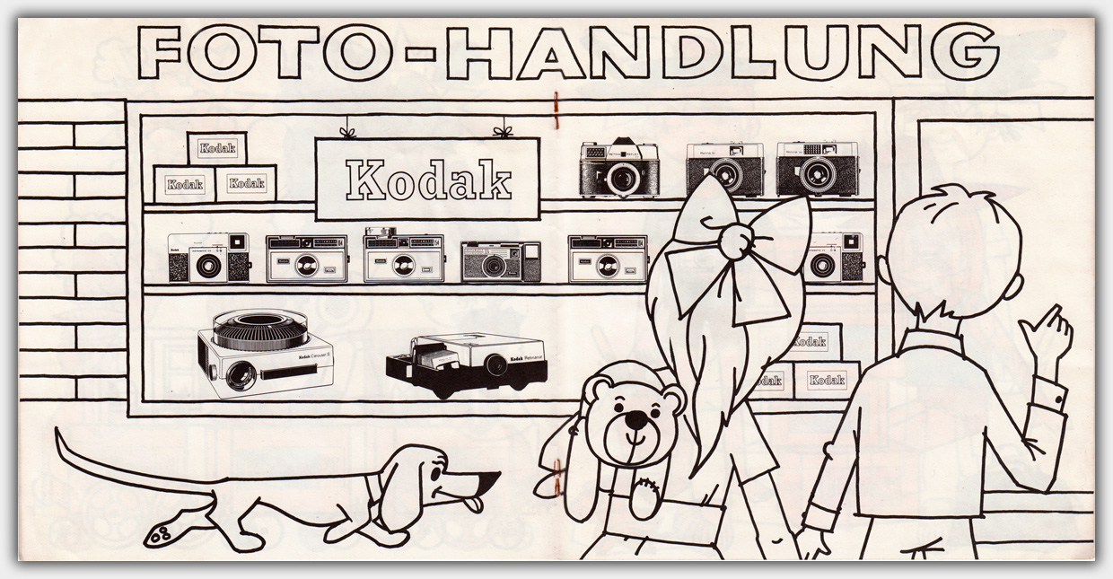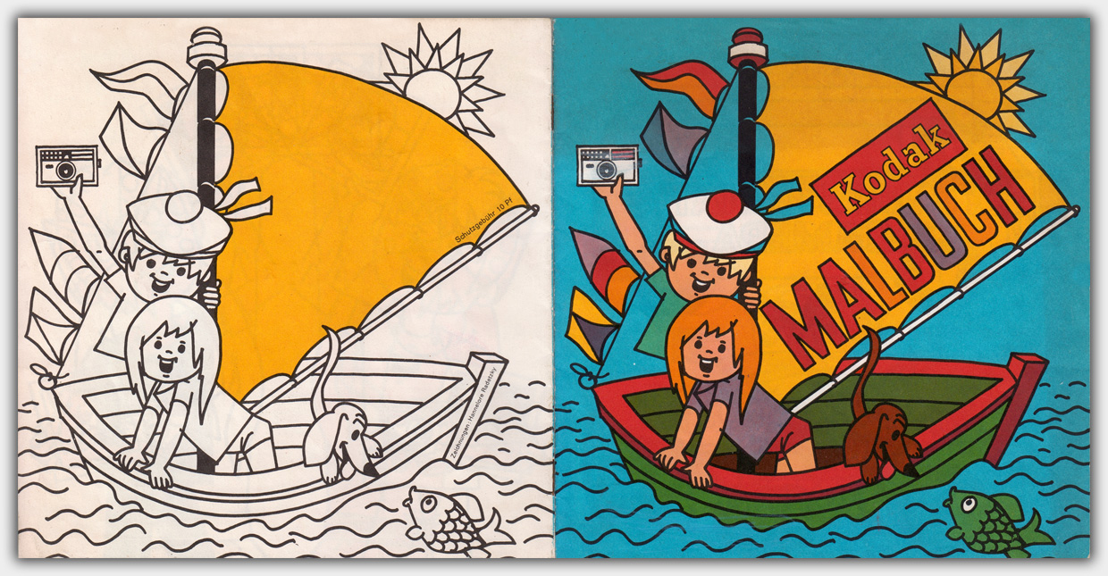 Der Kamera- und Fotozubehör Hersteller Kodak AG, Stuttgart gab Ende der 1960er Jahre ein Malbuch heraus. Das Heft im Format 19,5 x 19,5 cm hat einen Umfang von 8 Seiten und wurde gegen eine Schutzgebühr von 10 Pfennig abgegeben.