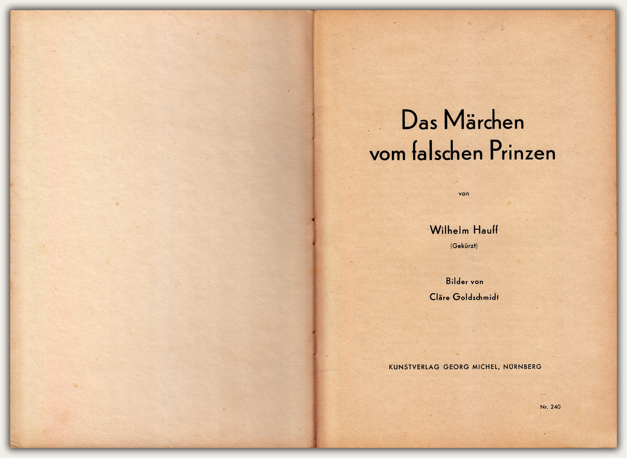 Im Kunstverlag Georg Michel erschien eine gekürzte Version mit Illustrationen von Cläre Goldschmidt. Im Katalog der deutschen Nationalbibliothek wird als Buch zeitlich um 1936 eingeordnet. Allerdings sind die Grafiken alle mit CG 42 signiert, was auch auf das Jahr 1942 hinweisen könnte. Das Buch hat das Format von 29 x 20 cm und einen Umfang von 16 Seiten. Es trägt die Verlagsnummer 240.