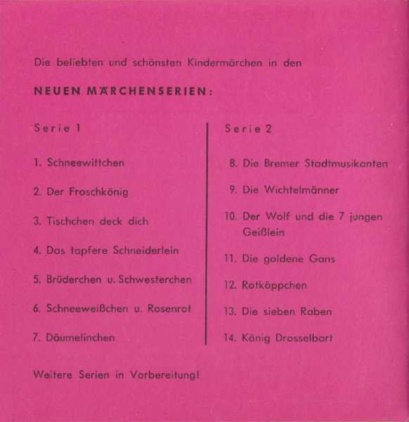 Im Verlag E. MÜHLEHNER, 8201 AU BEI BAD AIBLING erschien eine Lizenzausgabe mit 12 bzw. 14 Märchenheften von Gerti Mauser-Lichtl. Fanni Sahling verfaßte die Texte.
