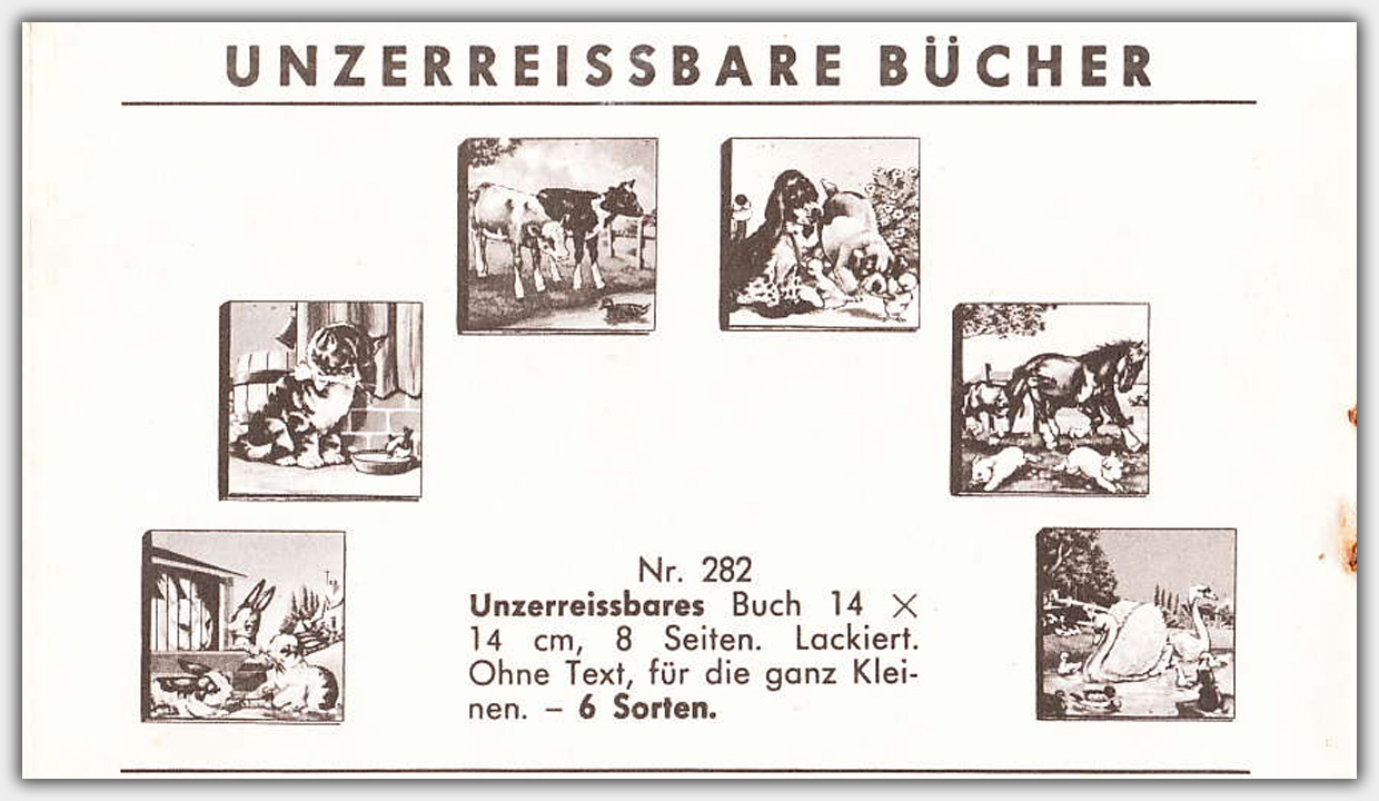 Das Format betrug 14 x 14 cm, der Umfang 4 Kartonblätter. Die Reihe bestand aus 6 Büchern, die keine Titel und Texte hatten.