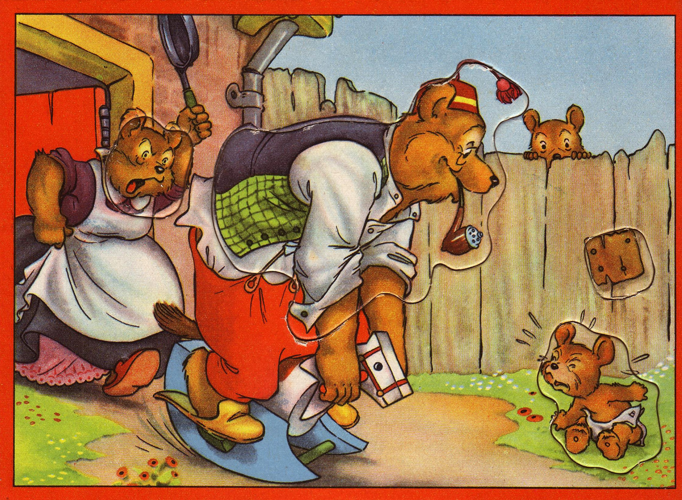 Vermutlich stammen die Motive der Karten von Bilderbuchreihen die zuvor bzw. zeitgleich erschienen sind. Beim italienischen Verlagshaus ⇒ AMZ Editrice erschienen im gleichen Format der Puzzlekarten ⇒ Puzzle Bücher die auf Titel und Rückseite jeweils ein Puzzle in gleicher Art vorgestanzt haben. Die Bücher wurden in den Niederlanden produziert. Zwei der mir vorliegenden Bücher sind motivgleich mit jeweils 2 der Puzzleskarten.