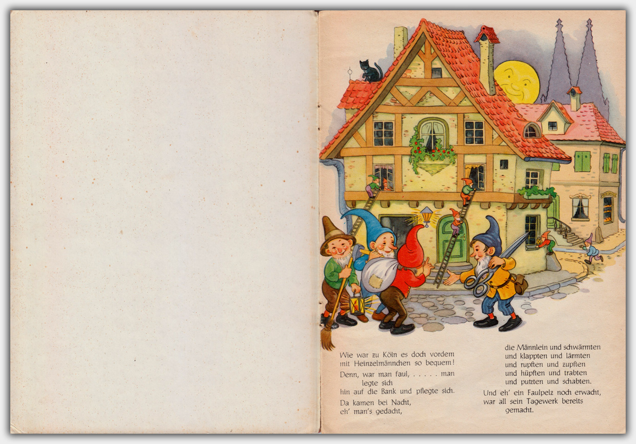 Der Titel Die Heinzelmännchen zu Köln hat die Verlagsnummer 4575. Das 12-seitige Hardcover hat das Format von 26 x 19 cm und einen Leinenrücken. Der Text stammt von August Kopisch.