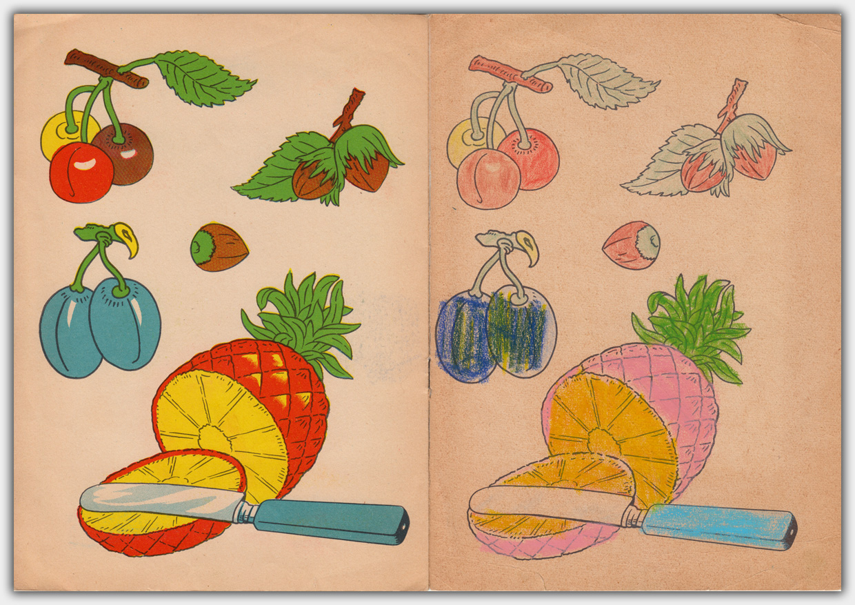 Hier finden sich Malbücher und -hefte im Format 26,5 x 19 cm. Erschienen wahrscheinlich in den 1960er Jahren.