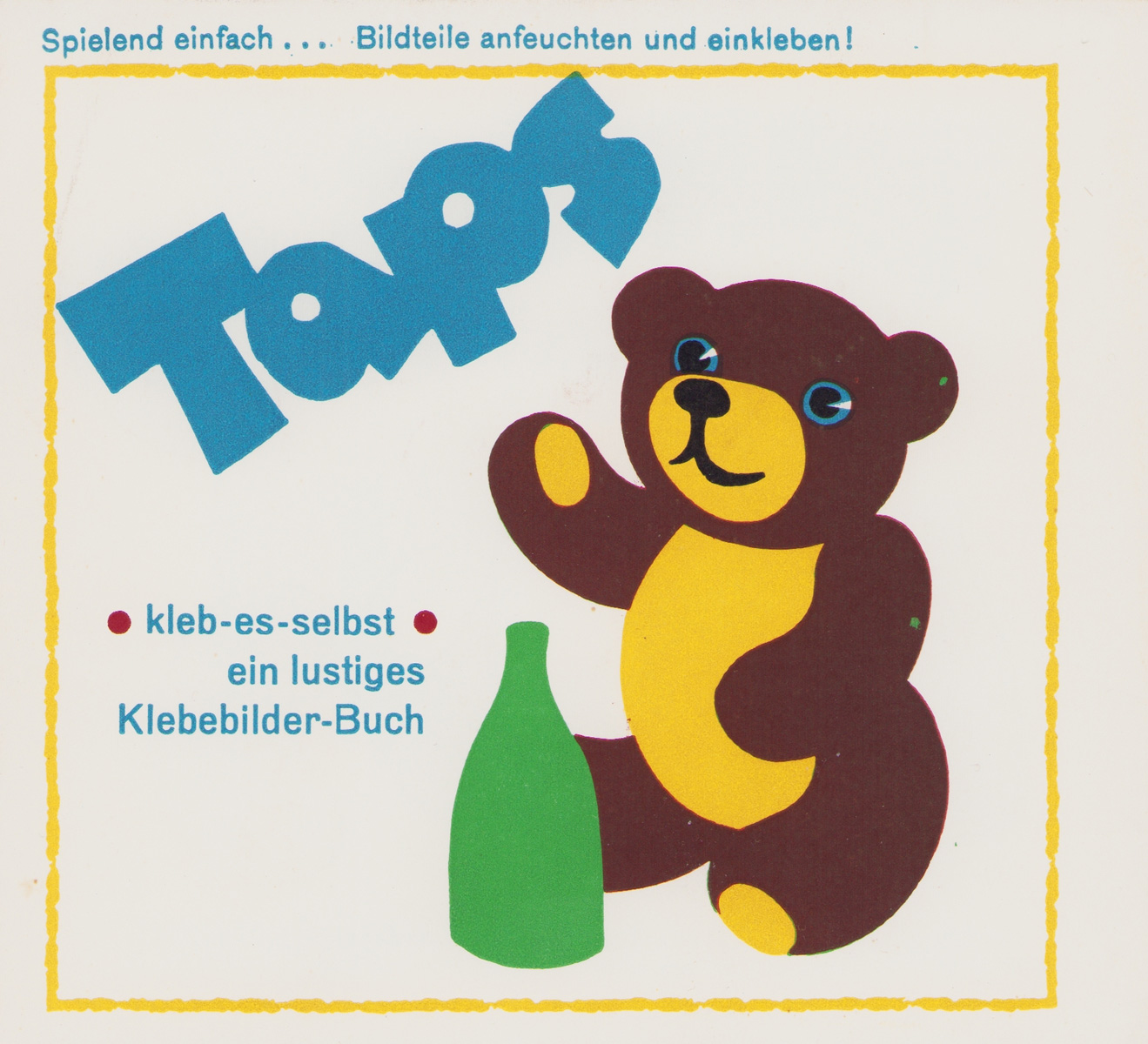 Im Teddy Verlag erschien eine Reihe mit Klebebild-Büchern. Die Hefte haben das Format von 13,5 x 15 cm. Ein Pappstreifen von ca. 59,5 cm Länge ist dabei so gefaltet und geklebt, das sich daraus 4 Seiten und eine Einstecklasche ergeben. In der Lasche sind die Klebebilder und ein Übersichtsblatt eingelegt. Die Klebebilder werden angefeuchtet und eingeklebt.
