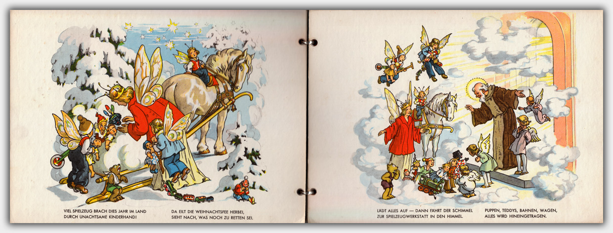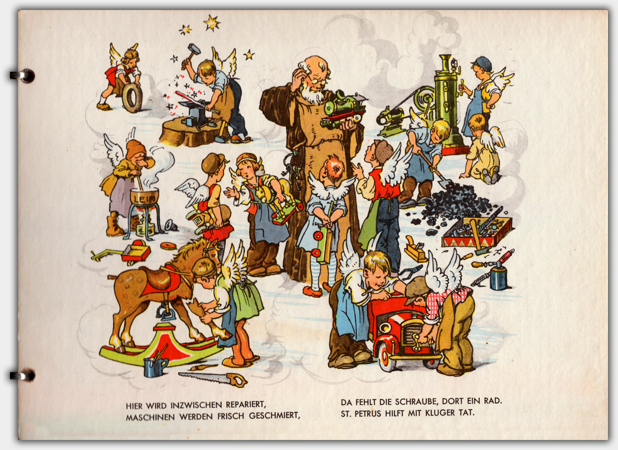 1954, anderen Quellen nach 1957, erschien in der Verlagsbuchhandlung Julius Breitschopf das Pappbilderbuch Die Himmelswerkstatt. Neben einer Ausgabe mit Halbleinenbindung gibt es auch eine mit Metallringbindung. Das Buch im Format 19,7 x 27,3 cm (Metallringbindung) hat einen Umfang von 4 Kartonblättern. Das metallringgebundene Buch trägt die Verlagsnummer 0118. Im Katalog der deutschen Nationalbibliothek ist der Preis mit 1,95 DM bzw. 13,50 Schilling angegeben.