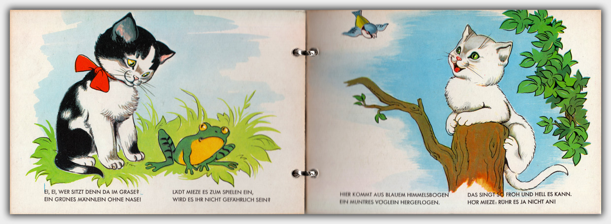 Spätestens Anfang der 1960er Jahren erschien in der Verlagsbuchhandlung Julius Breitschopf eine Reihe Pappbilderbücher mit Metallringbindung im Format 14 x 20 cm. Die Bücher haben eine Umfang von 4 Kartonblättern.