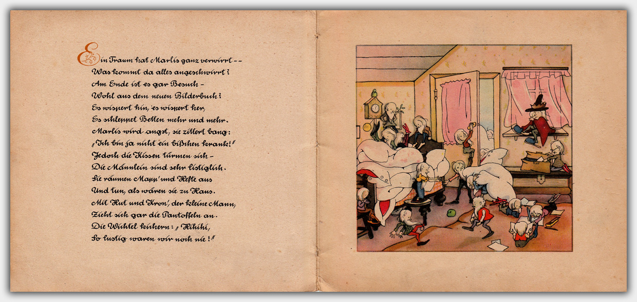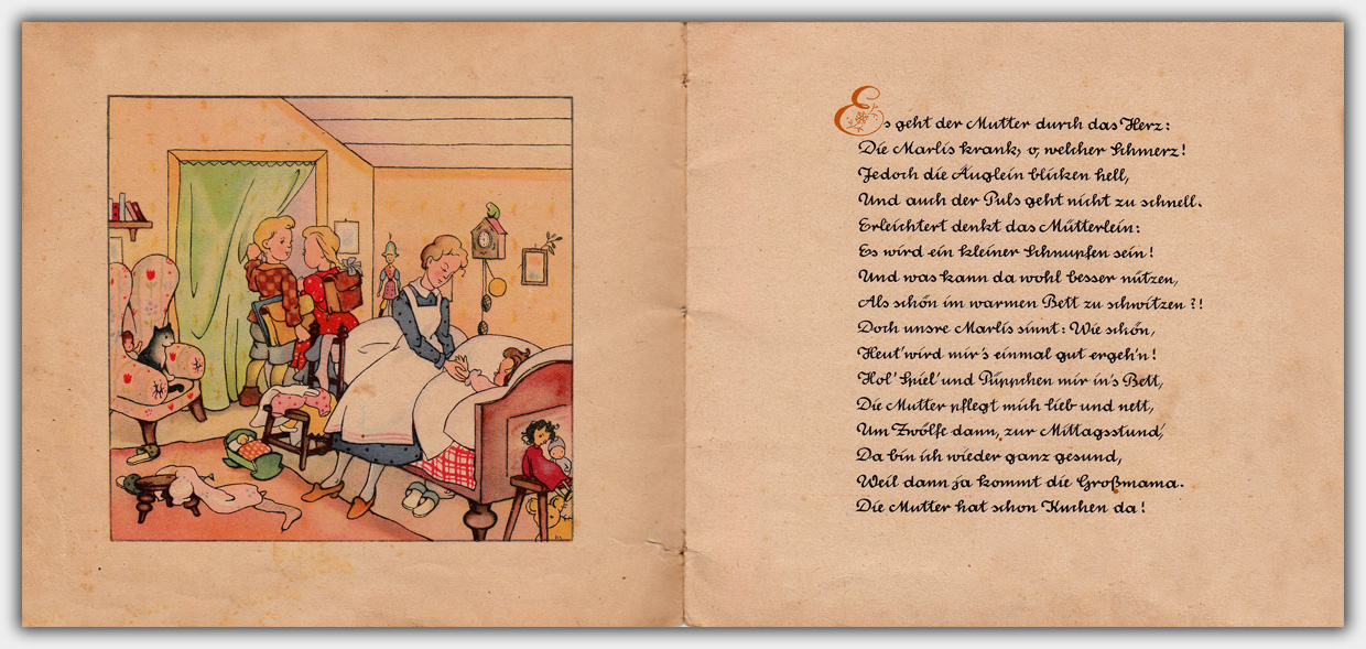 In der Reihe Flechsig – Bilderbücher erschien um 1940 das Buch Marlis will nicht zur Schule geh’n von Dörte Guyot.