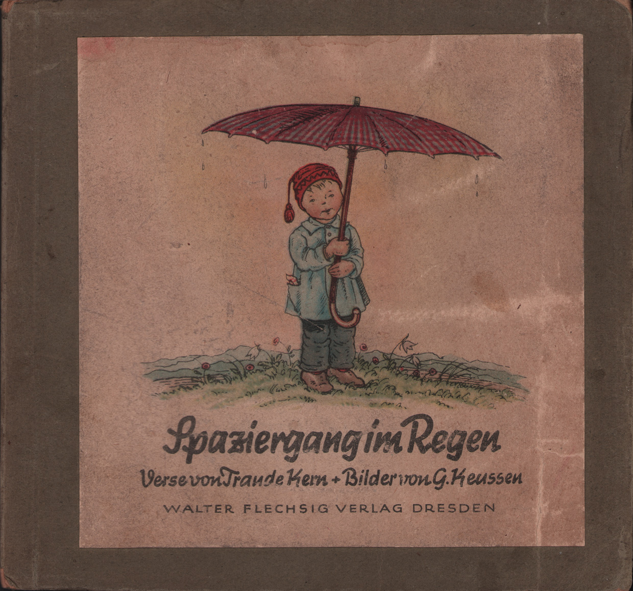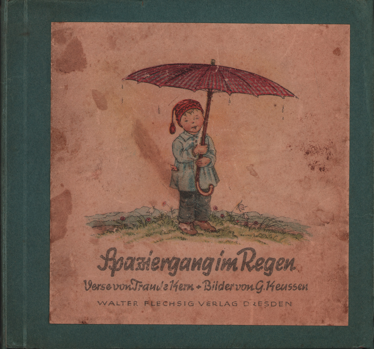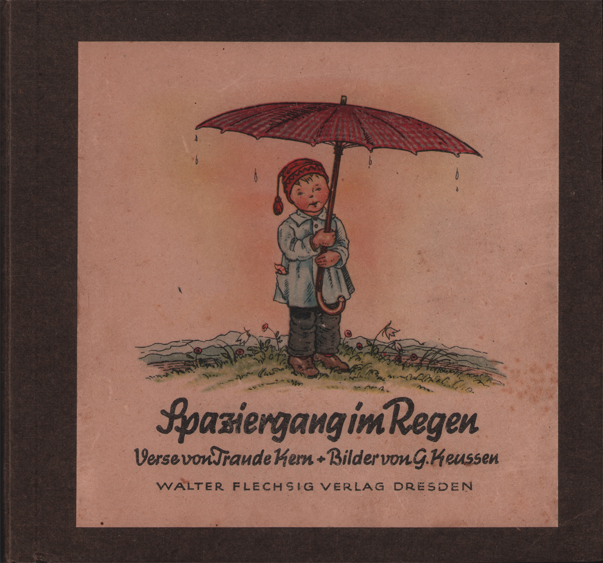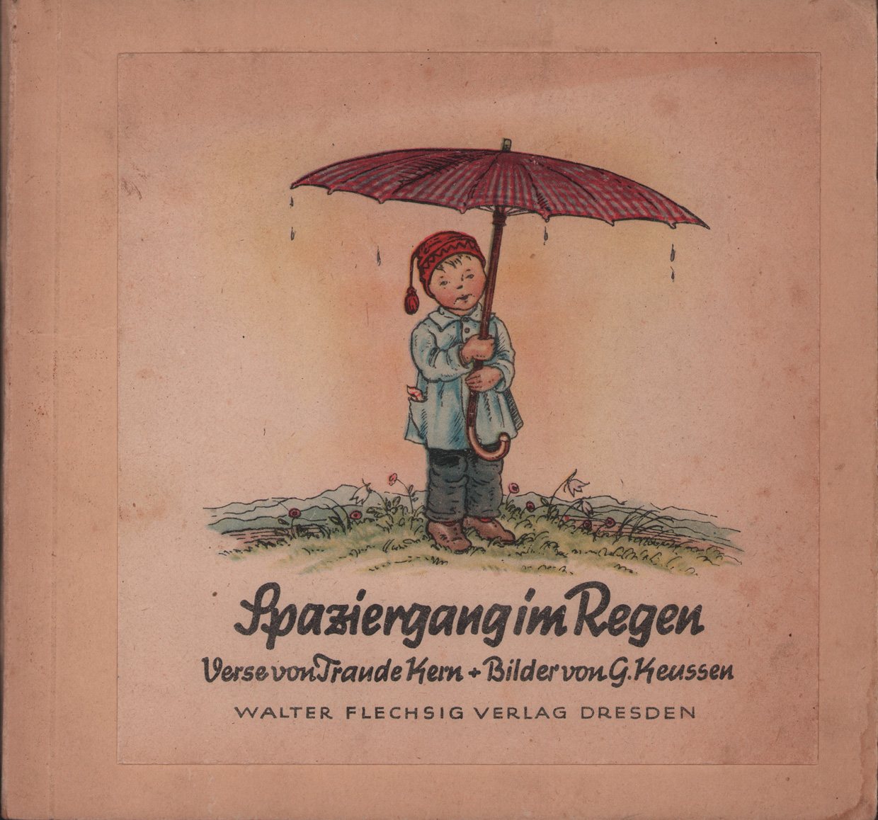 Um das Jahr 1944 erschien in der Reihe Flechsig – Bilderbücher das Buch Spaziergang im Regen. Der Text stammt von Traude Kern, die Bilder von Gudrun Keußen.
